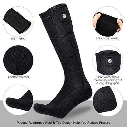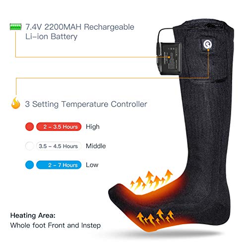 Bevat oplaadbare 7.4 V lithium batterijen met 2200 mAh: deze oplaadbare sokken worden geleverd met een ingebouwde 7.4 volt voeding, die met 2 lithiumionbatterijen wordt gebruikt. De batterijen zijn volledig oplaadbaar. Ze kunnen echter worden gebruikt voor het werken, skiën, jagen, wandelen, schoppen van de oprit, zelfs voor het rijden met de motorfiets in de sneeuw of voor andere werkzaamheden bij koud weer.