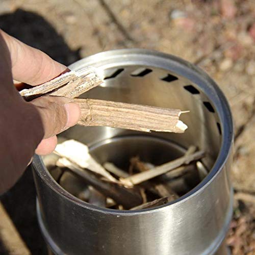 – Gebruik de twijgen, bladeren, takken, hout als brandstof om een maaltijd te koken tijdens uw wandeling, geen geld meer besteed aan gasflessen (Breed openingsontwerp voor handig toevoegen van hout en verbeterde luchtstroom, hogere brandefficiëntie. ), geen chemische emissies en koolstofvoetafdruk. De kachel bevat een lade om vaste alcoholbrandstof te houden.