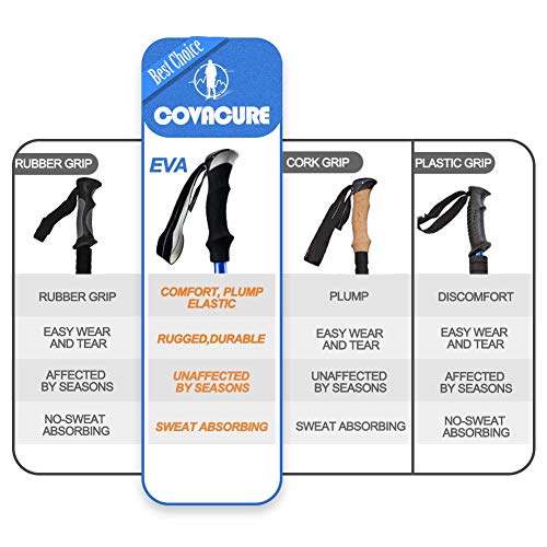 【Ontworpen door Echte Wandelaars】 Covacure-wandelstokken zijn voorzien van driedelige telescopische assen en snelle fliplocks, gemaakt van vliegtuigkwaliteit 7075 Aluminium, wat cruciaal is voor wandelen of backpacken in ruige terreinen en het ondersteunen van zwaardere gewichten, is beter bestand tegen druk en impact dan koolstofvezel, biedt een hoge mate van corrosiebestendigheid