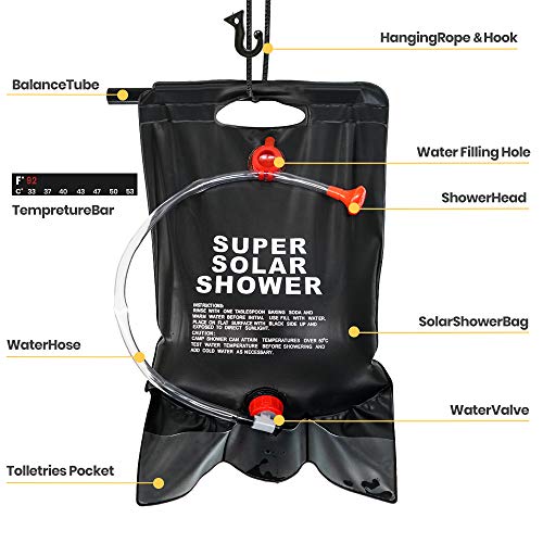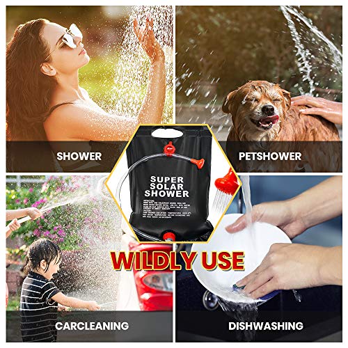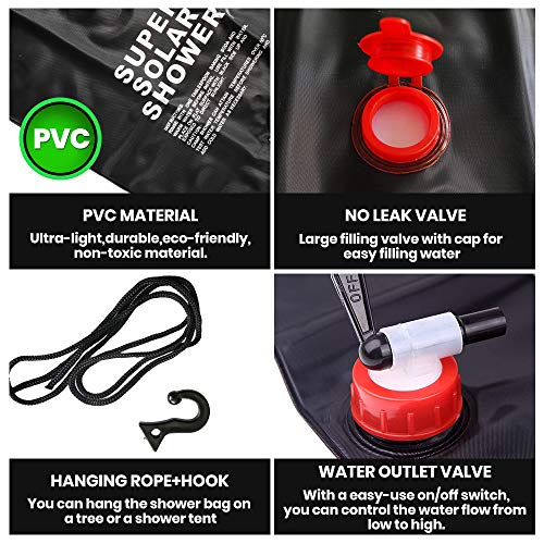 【Draagbare grootte & handig】 Lichtweig, flodabale, zeer gemakkelijk mee te nemen en zeer gemakkelijk op te bergen, het is geschikt voor kamperen, wandelen, vissen of jagen. Het heeft ook een haaktouw zodat je de douchetas aan een boom of een douchetent kunt hangen.