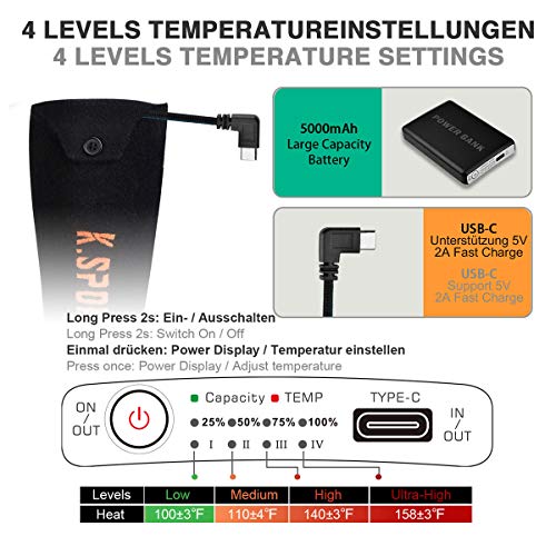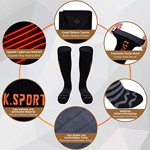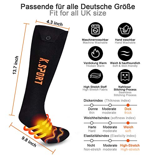 Specification: KirinSport Verwarmde sokken, geüpgraded, oplaadbaar, 5000 mAh batterij, voor heren en dames, verwarmde sokken voor koud…