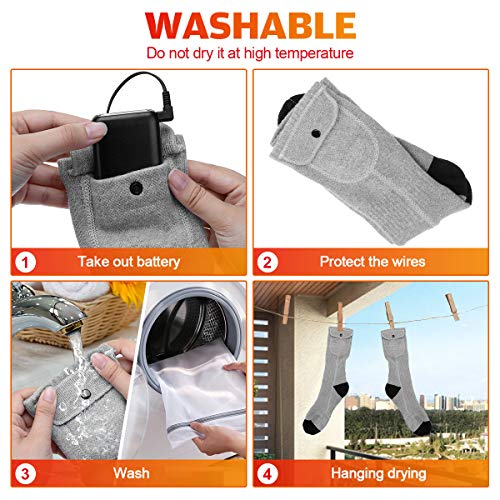⛄4. Wasbaar en geschikt formaat: Plaats bij het schoonmaken de draad in de sokzak en verwijder de batterij. Als je de machinewasmodus moet gebruiken, doe de sokken dan in een waszak, gebruik geen droger of stel ze bloot aan de zon. Droog ze gewoon op een koele plaats. De verwarmde sokken zijn unisex en hebben maat M / L. Het heeft een uitstekende elasticiteit en elasticiteit.