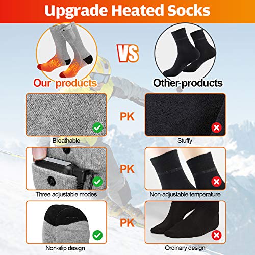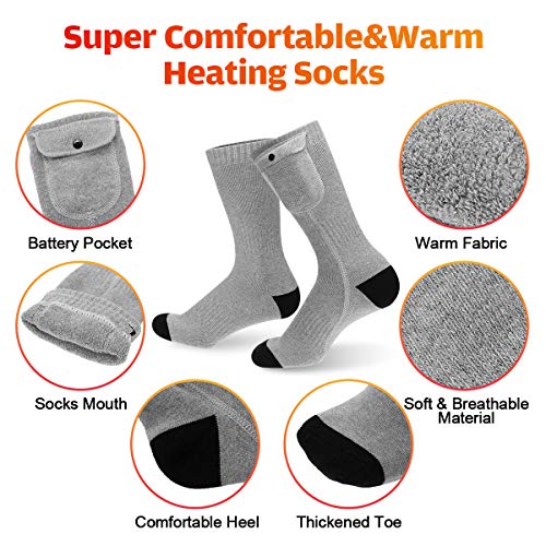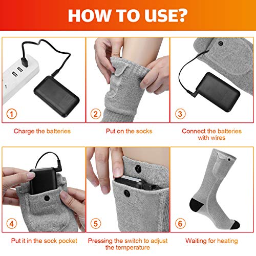 “⛄1. Comfortabele en zachte verwarmde sokken: Om meer uitgebalanceerde warmte aan uw voeten te brengen, voegen onze verwarmde sokken verwarmingselementen toe aan uw tenen en zolen, een stabiele temperatuur en wrijvingsloze weerstand, en met lithium-polymeerbatterijen kunt u uw voeten de hele dag warm houden nadat de sokken volledig zijn opgeladen. Het ultrazachte, dikke gebreide materiaal wordt gekenmerkt door een goede luchtdoorlatendheid en sterke zweetopname.”