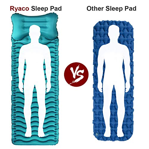 Ryaco Camping isomat klein met kussen, ultralichte outdoor slaapmat, opblaasbaar luchtmatras, slaapmat matras voor…