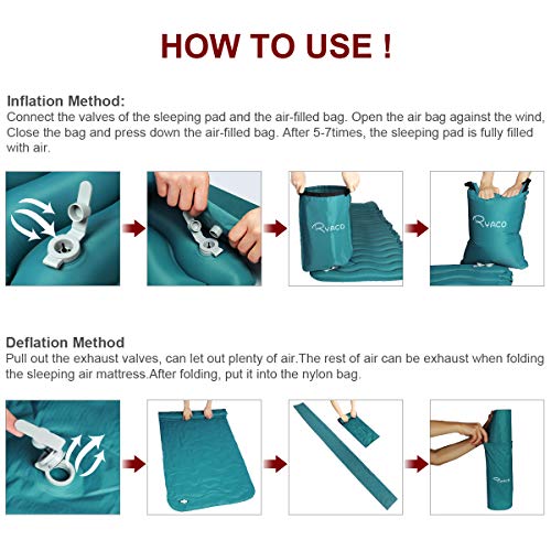 【Comfortabel & duurzaam】 De Ryaco-isomat is uitgerust met een ingebouwd kussen van 15 cm en een watergolfvorm. Het past zich aan de kromming van het menselijk lichaam aan en compenseert de druk op het bedoppervlak. Het ontspant de spieren diep en verbetert de slaapkwaliteit TPU, deze opblaasbare slaapmat is sterk en duurzaam genoeg om een persoon zo zwaar als 100 kg te slapen.