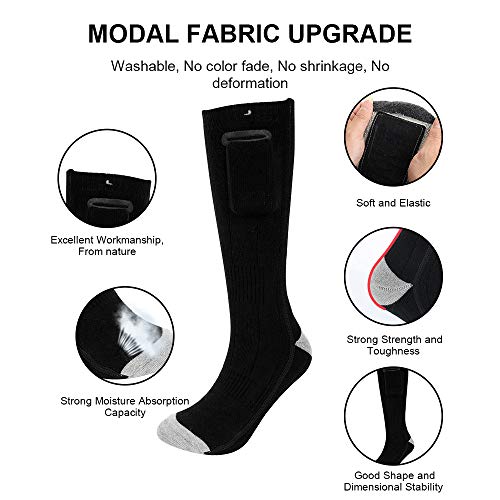 Zacht en ademend materiaal – Verwarmde sokken zijn gemaakt van hoogwaardig modaal materiaal, absorberend, ademend, sneldrogend en goed elastisch. Houd je voeten warm en versnellen de bloedcirculatie. Zeg vaarwel tegen het koude weer en verwarm je de hele winter.