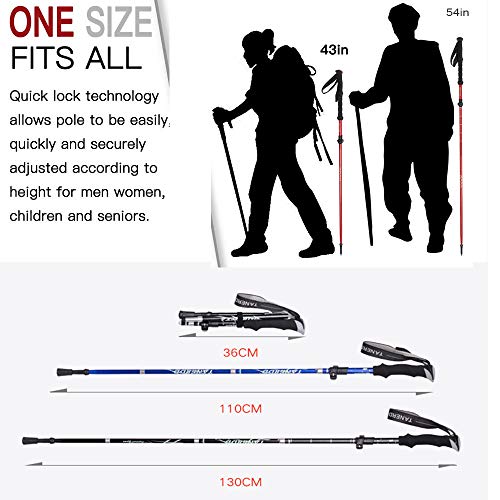 ➤ REKKING POLES: Onze Trekking Polen zijn een inklapbare ultralichte Nordic walking stick voor wandelactiviteiten of algemene wandelingen. De sticks zijn uittrekbaar van 36 cm tot 135 cm en kunnen worden aangepast aan elke lengte ertussen, 1 maat past allemaal. Trekking polen te duren. Geschikt voor alle soorten terrein en activiteiten zoals wandelen, wandelen of als dagelijkse wandelstok.