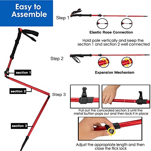 ➤ ANTI SHOCK/SHOCK ABSORBING POLES: Met het hoogwaardige luchtvaartaluminummateriaal kan het schokabsorberende effect schade door de slagkracht sterk verminderen, het kan druk weerstaan, zeer gemakkelijk te dragen en geschikt voor wandelen, wandelen, kamperen, backpacken.