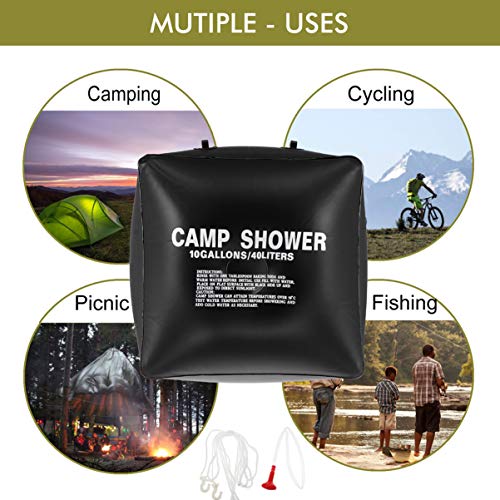 Grootste capaciteit]: zonne-campingdouche heeft een watercapaciteit van 40 liter, genoeg warm water voor meerdere douches; De douchetas zelf lekt niet en de kraan kan zelf worden vastgedraaid. De waterafvoer aan de bovenkant moet goed worden afgesloten om lekkage te voorkomen