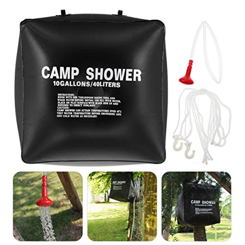 Functioneel uniek ontwerp: Camp-douche geleverd met een slang, een douchekop en een waterkraan. Campingdouches uitgerust met eenvoudig te draaien aan / uit-schakelaar om de waterstroom te regelen. De functionele camping douchetas is voorzien van PVC balansbuis, haak- en touwsysteem, die helpen om de tas in tenten of takken op te hangen