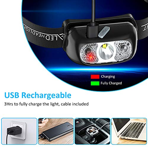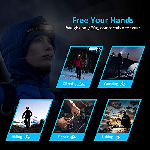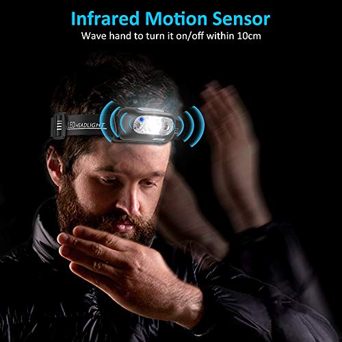 ★ Bewegings- en Handsfreesensor: Het heeft een IR-bewegingssensor, beweeg uw hand gemakkelijk voor (binnen 10 cm) van de koplamp om deze uit of in te schakelen. Gebruik deze koplamp in plaats van een zaklamp om uw handen vrij te houden, ideaal voor hardlopen, fietsen, jagen, elektrisch werk en meer. (12 maanden garantie zonder zorgen).