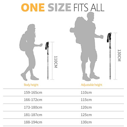 【Innovatief vouwsysteem】 Covacure Trekking stokken zijn voorzien van een uniek en eenvoudig te gebruiken vouwsysteem, je kunt je palen snel van 109 cm tot 130 cm verlengen, wat aan de behoeften van mensen van verschillende hoogtes kan voldoen. Wanneer deze niet in gebruik zijn, zijn deze gemakkelijk op te vouwen tot minder dan 35 cm (14″) om in uw rugzak te worden opgeborgen