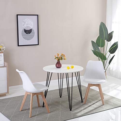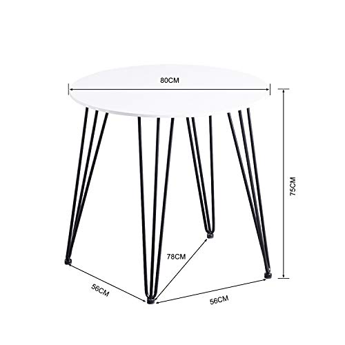 Specification: DORAFAIR Scandinavische Stijl Ronde Eettafel met Zwart Ijzeren Poten,Eetkamer/Woonkamer/Kantoormeubilair, Witte