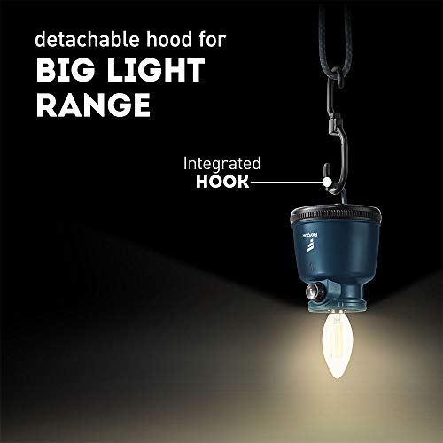 🏕️ Wil je graag kampeerverlichting aan een balk of in de tent ophangen? Geen probleem, want er zijn twee ophangmogelijkheden. De campinglantaarn heeft een uitklapbare beugel en eronder zit een geïntegreerde haak. Tip voor liefhebbers van direct licht: draai eenvoudigweg de lampenkap eraf. Daardoor verbeterd de lichtopbrengst waardoor de gehele tent verlicht kan worden.