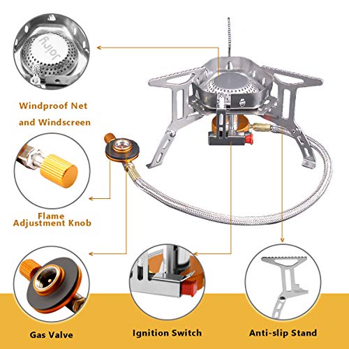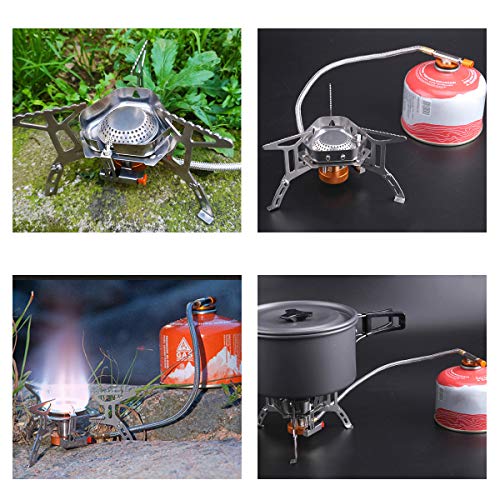Duurzaam & Steady: De Camping Gas Stove is gemaakt van ultralichte aluminiumlegering en roestvrij staal, waardoor de camping gasfornuis lager corrosie en hoge temperatuur. Zaagtand arm kan stabiel ondersteunen kookgerei zo groot als 18L.
