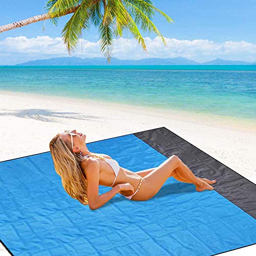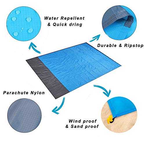 HISAYSY Stranddeken zandbestendige picknickdeken, extra groot, 210 x 200 cm, waterdicht en lichtgewicht strandmat met 4…