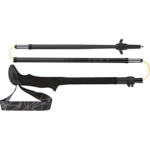 Leki Black series. Vouwstok in stabiele ELD (External Locking Device) constructie – met een druk op de knop kan de stokspanning losgemaakt worden. Lichte en randloze Aergon thermo-handgreep voor comfortabel omgrijpen; ademende Lock Security lus; Thermo Mid greepverlenging; Speed Lock 2 verstelsysteem; Flex Tip Short voor nauwkeurig gebruik. Buisdiameter 18|16|14|14 mm; lengte 110-130 cm, traploos verstelbaar; gewicht 239 g/stok; verpakkingsmaat 40 cm; materiaal 100% carbon.