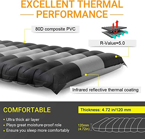 Specification: OVERMONT Camping isomat 12 cm dik voor kamperen wandelen backpacking reizen tent strand zwart / blauw