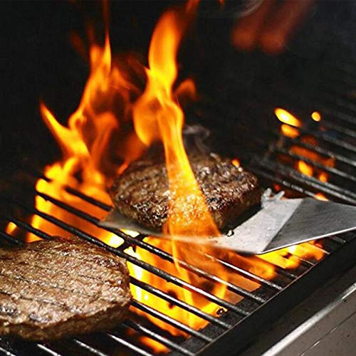 – Premium kwaliteit: het gereedschap voor de barbecue is gemaakt van professioneel roestvrij staal, dat duurzaam en hittebestendig is en het zal buigen of breken. De lange handgreep is breed en uitgeschoven uit de buurt van het voedsel, waardoor het meer hittebestendig is en stevig genoeg is om vast te houden dat niet buigt of smelt en uw handen veilig houdt.