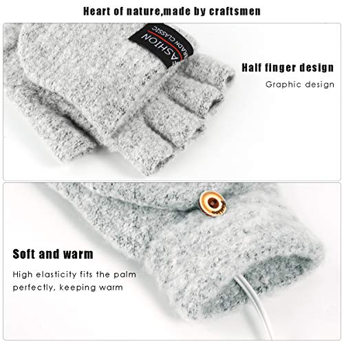 Rehomy USB verwarmde handschoenen handschoen voor mannen en vrouwen, winter warme gebreide volledige & halve vinger…