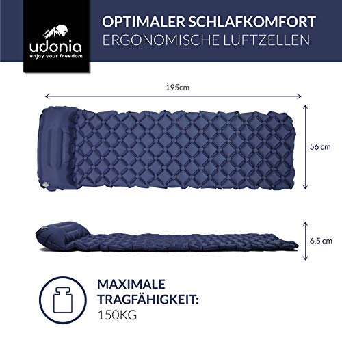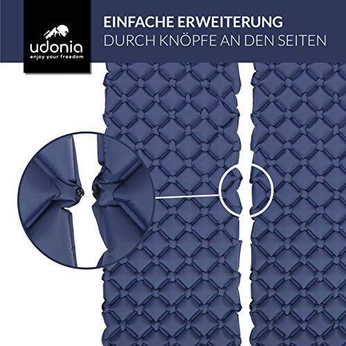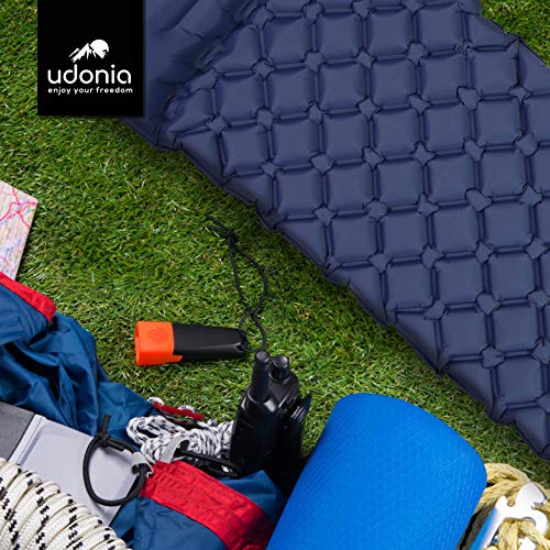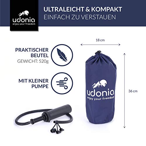 Udonia isomat, ultralicht luchtmatras (blauw) voor camping en outdoor, met hoofdkussen, praktische draagtas, pomp en…